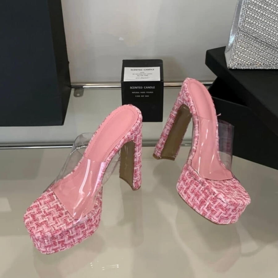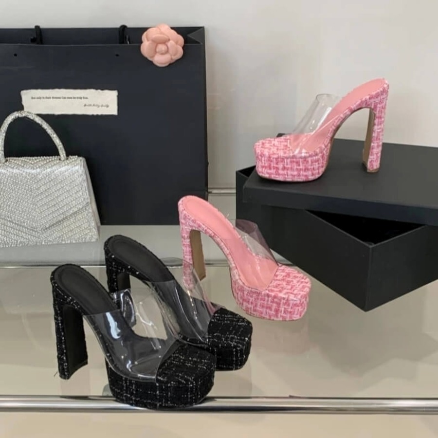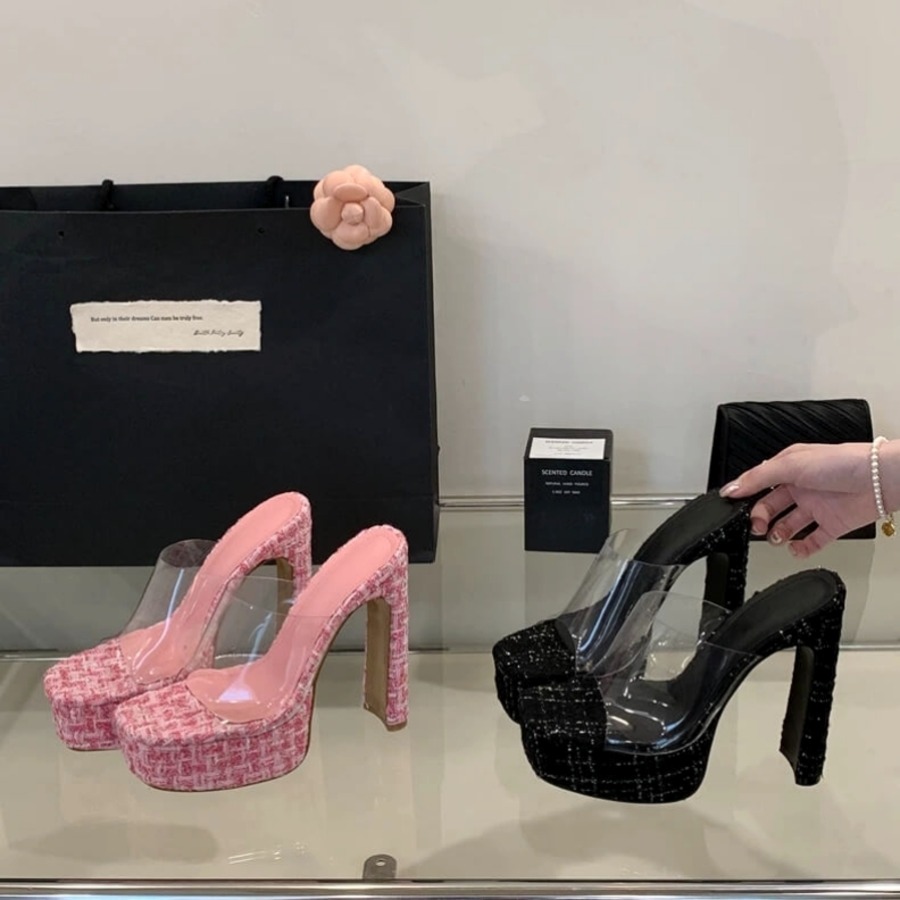 【size25.0cmあり】クリアツイード厚底サンダル14cm全2色