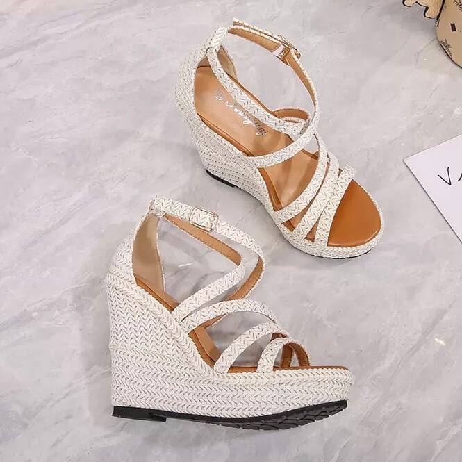 《選べるヒール高さ》リゾートナチュラル厚底ウェッジソールサンダル【12cm14cm16cm】