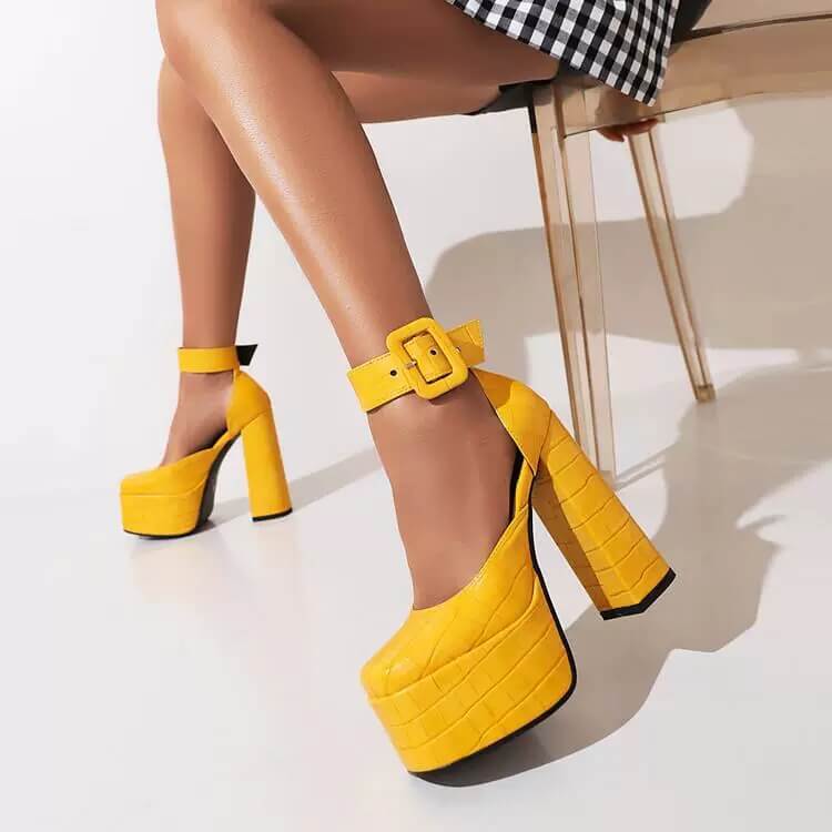 【26.5cmのみ最短発送】クロコ調アンクルベルトヒール14cm全3色