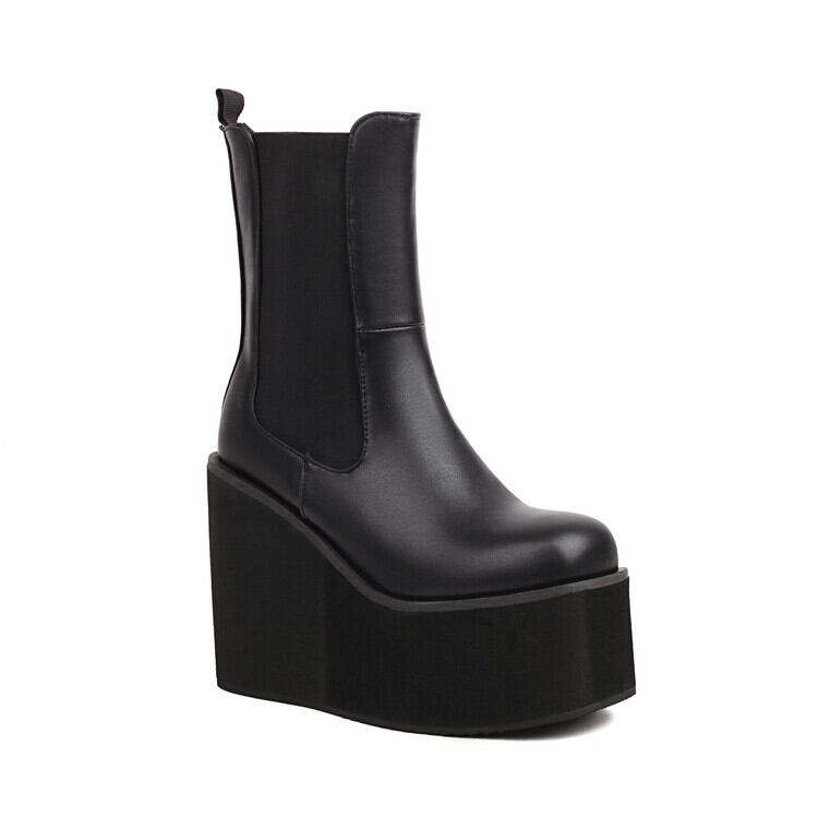 【size26.5cmあり】サイドゴアウェッジソール厚底ブーツ12cm全2色