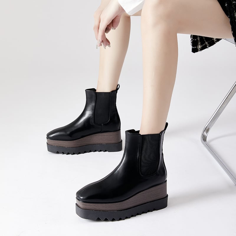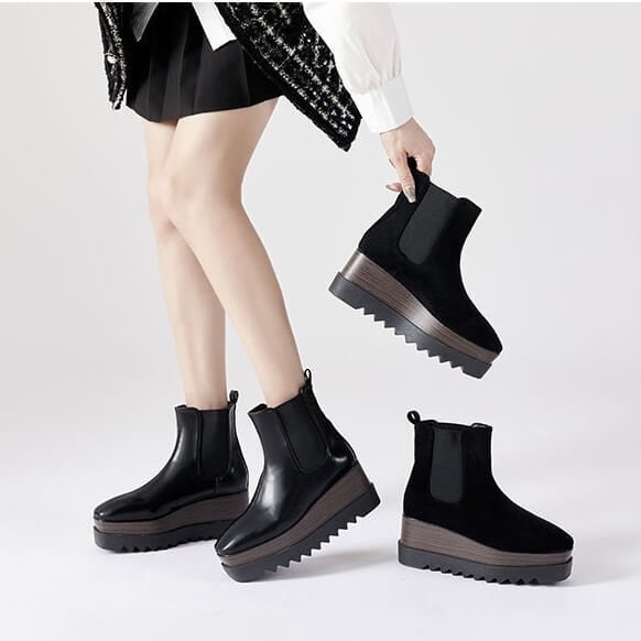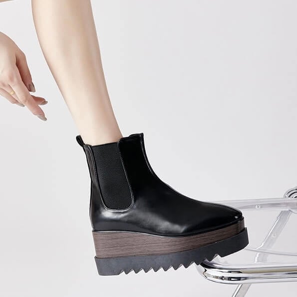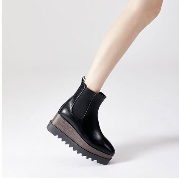サイドゴアウッドソールプラットフォームブーツ8cm全2色