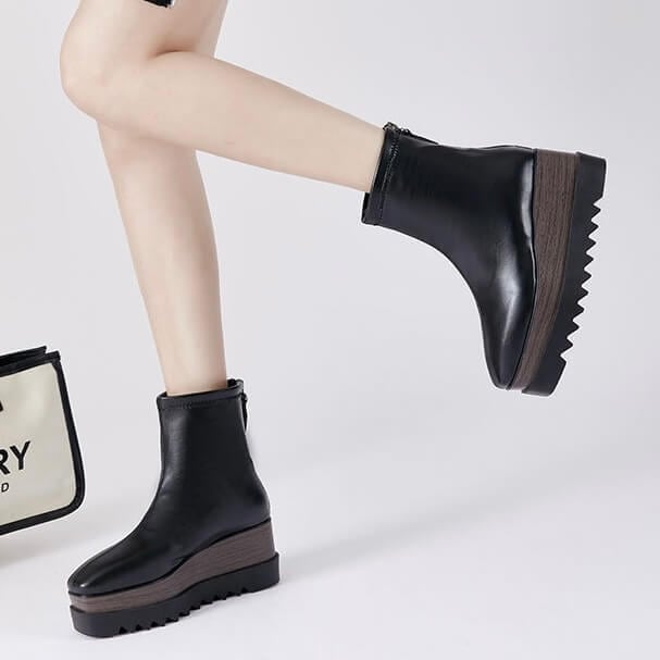 バックジップウッドソールプラットフォームブーツ8cm