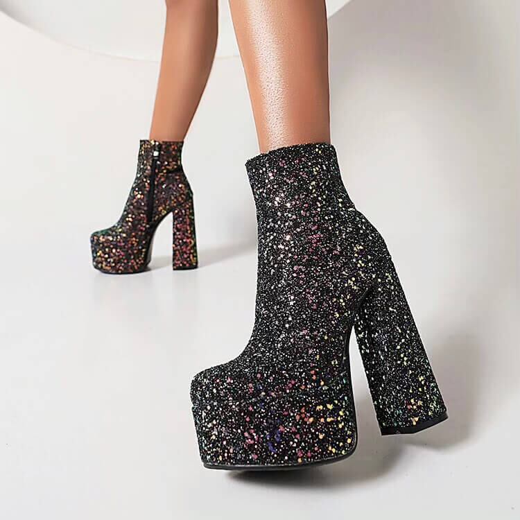 【size26.5cmあり】グリッターレトロヒールブーツ15cm全2色