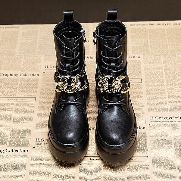 【size21.5cmあり】ワイドチェーンプラットフォームブーツ8cm全2色