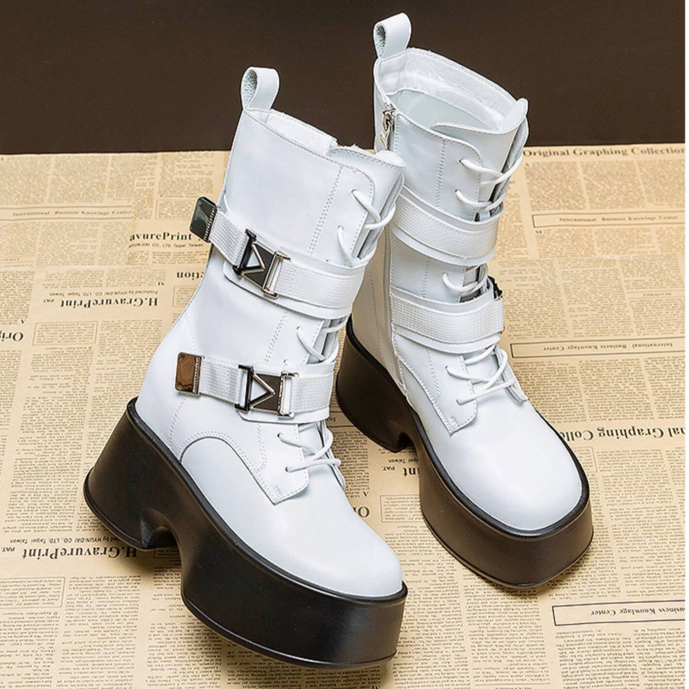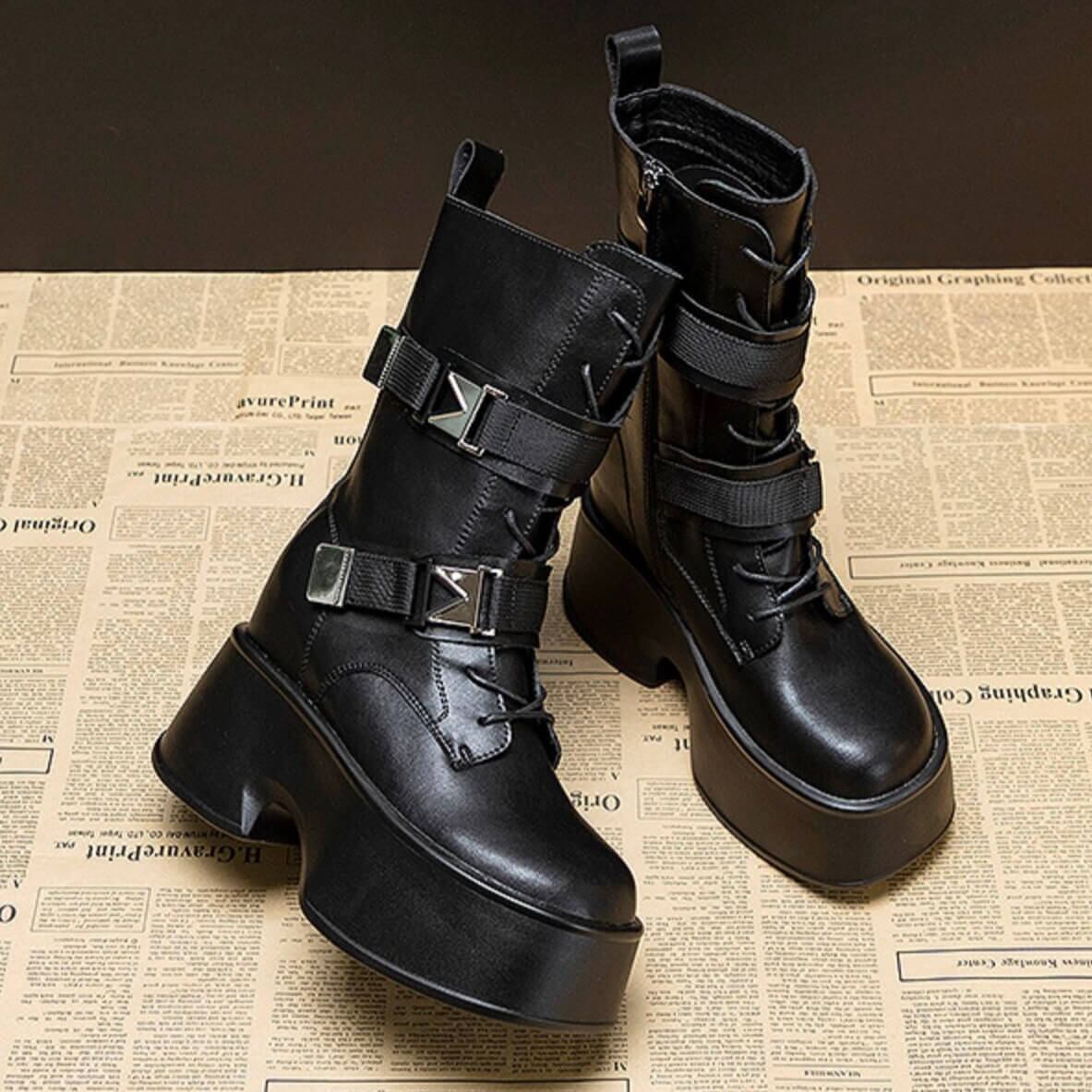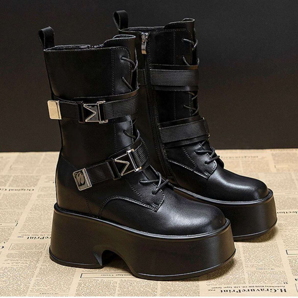 【size21.5cm~あり】ロックベルトプラットフォームミドルブーツ11cm全2色