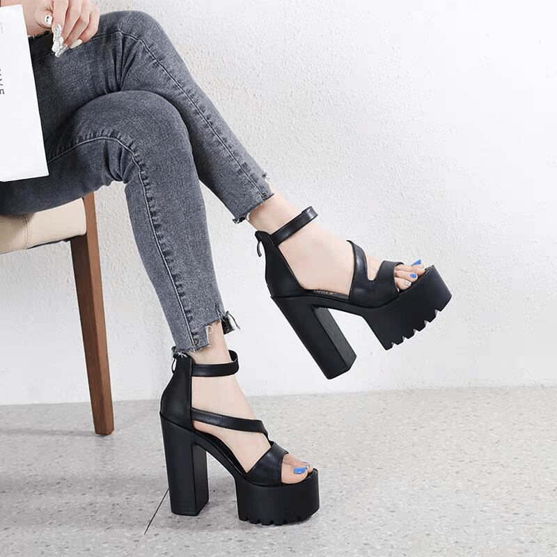 《選べるヒール高さ》スタイリッシュカットベルトサンダル全2色 【10cm/12cm/14cm/16cm】