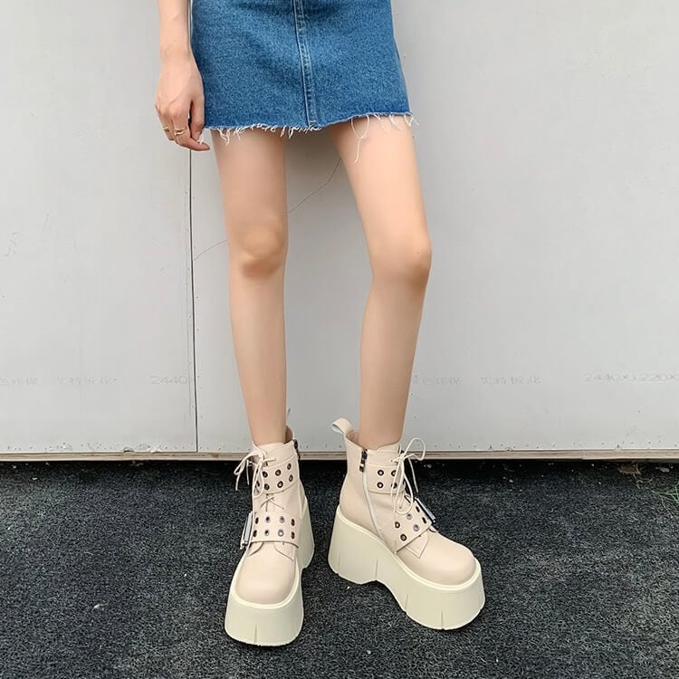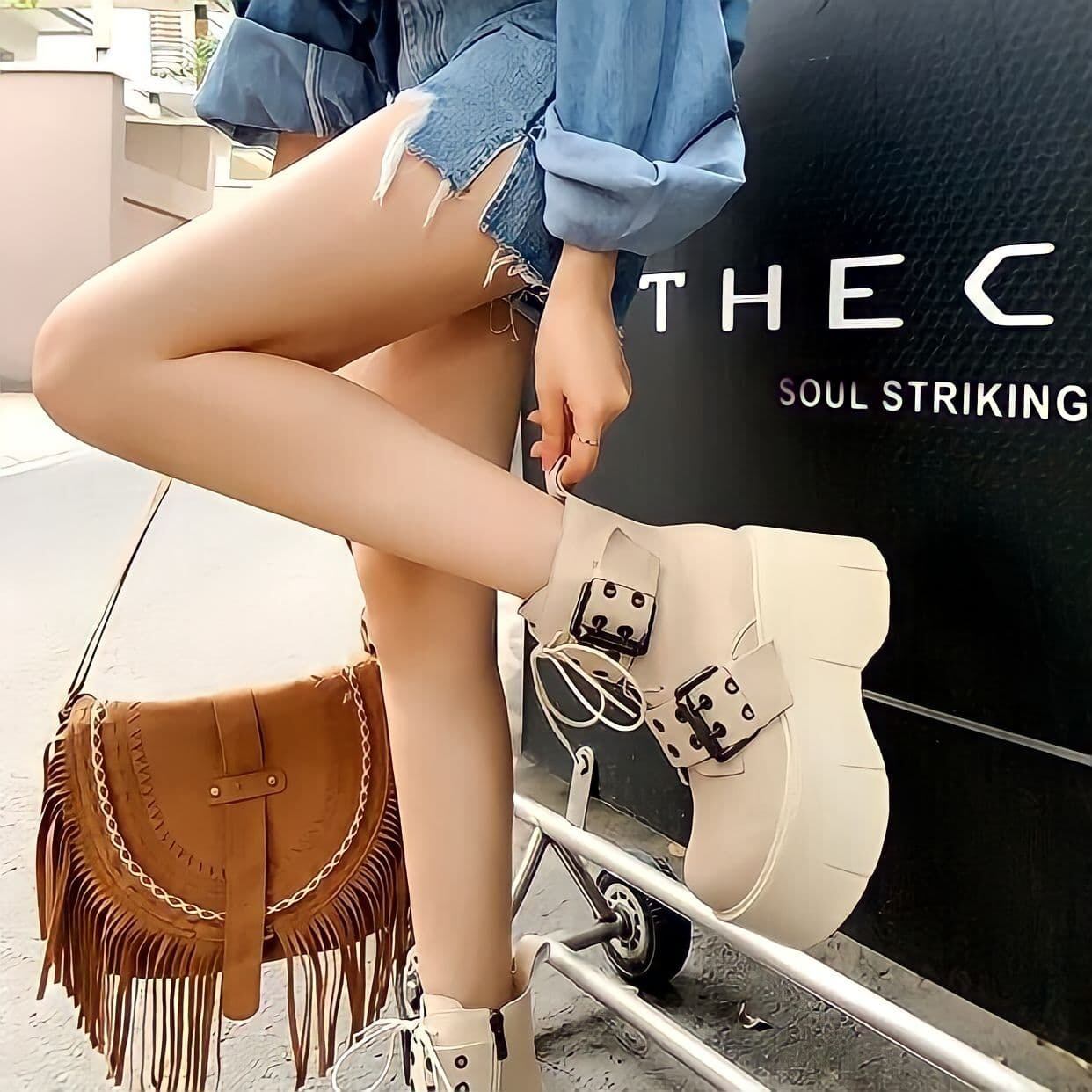 ボリュームソールスクエアダブルベルトショートブーツ10cm全2色