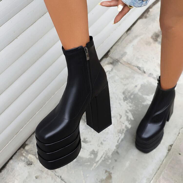 【size26.5cmあり】ハイプラットフォームショートブーツ14cm全2色