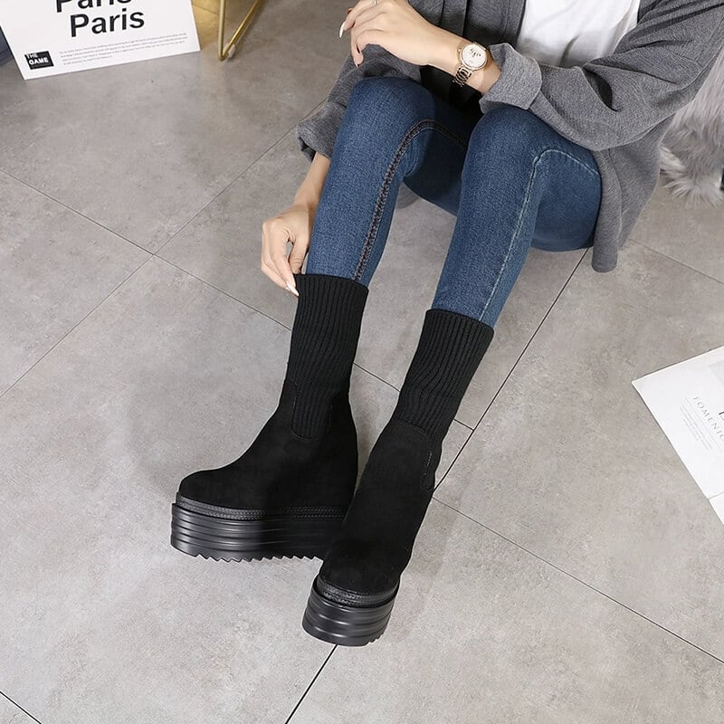 《選べるヒール高さ》2wayウェッジソール厚底ショートブーツ全2色【12cm/14cm】
