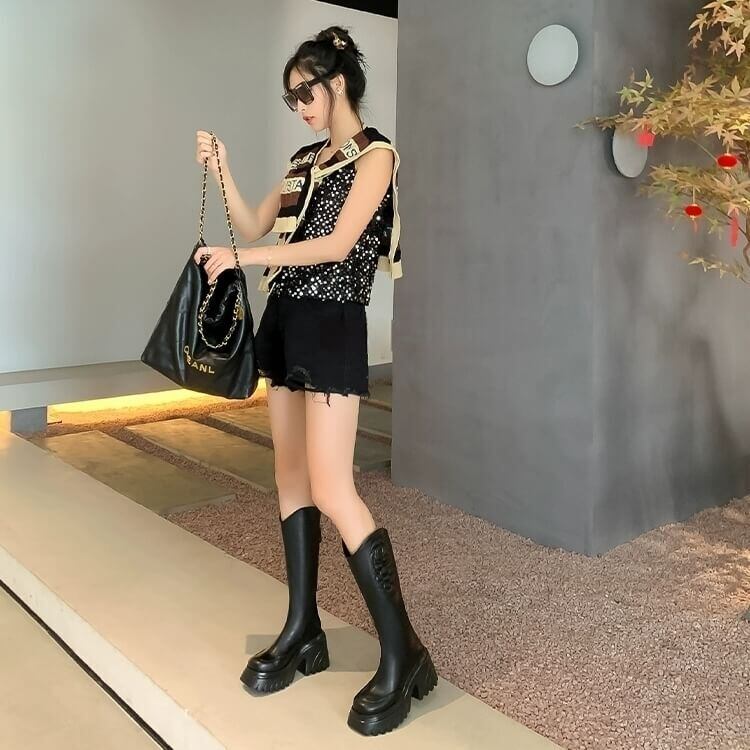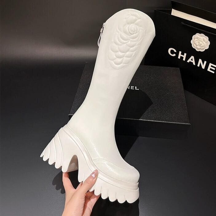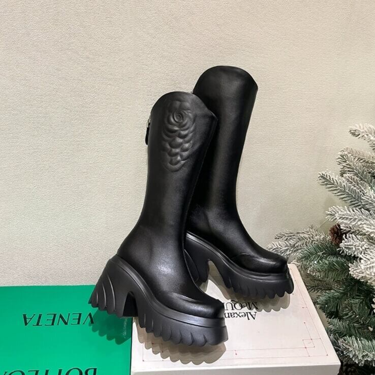 【size25.0cmあり】カメリアモチーフエレガントロングブーツ10cm全2色