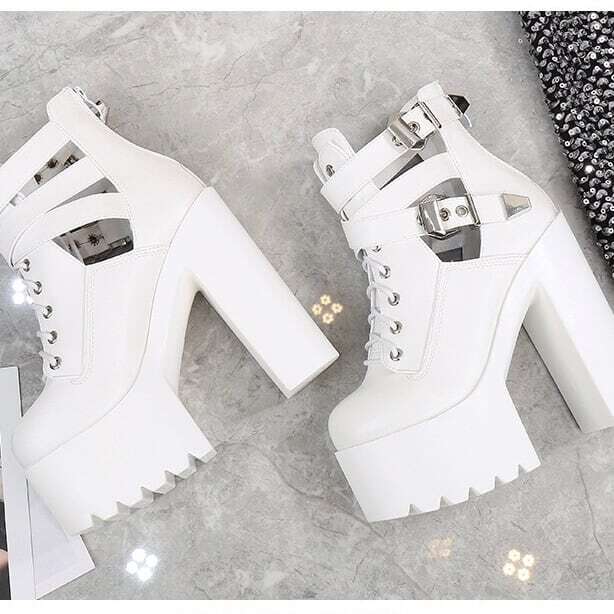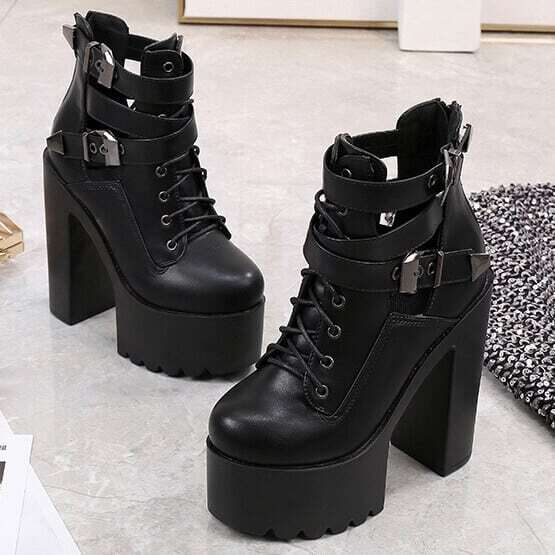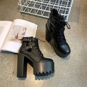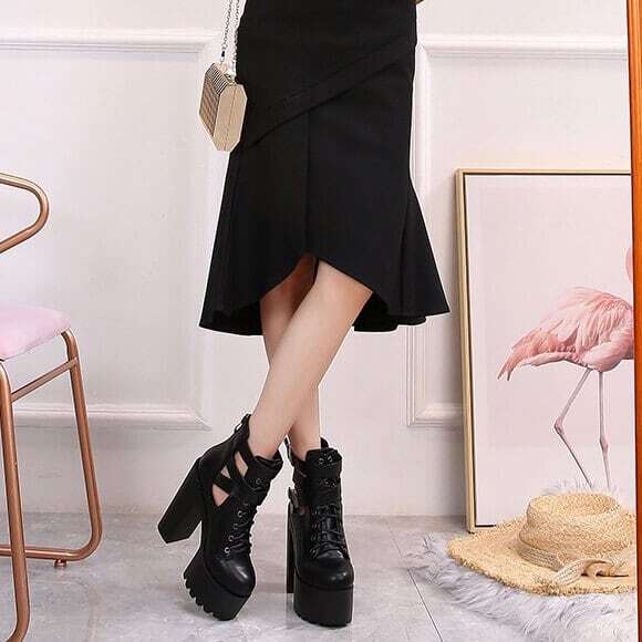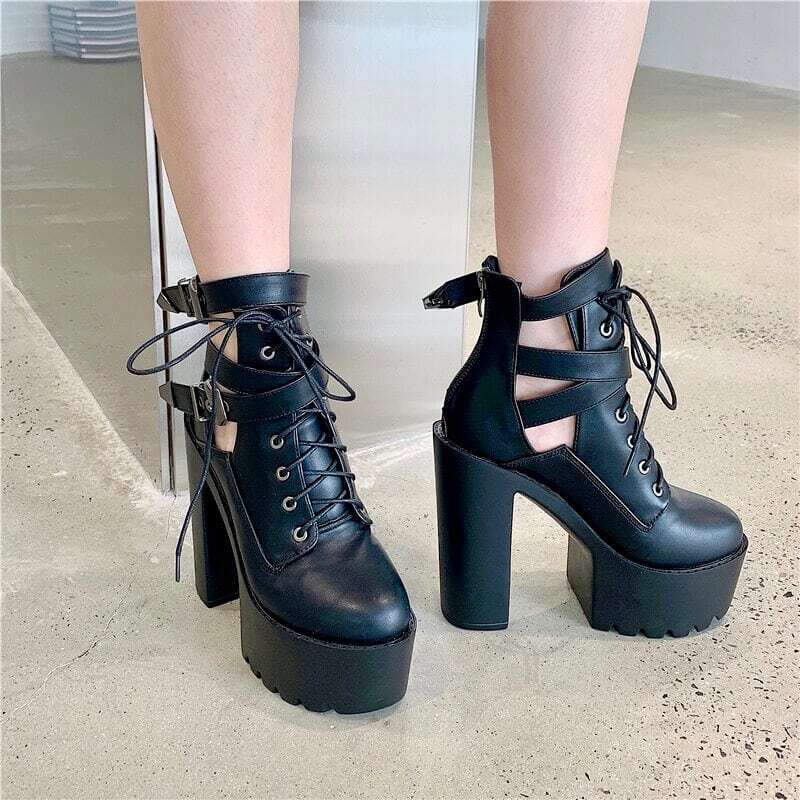 《選べるヒール高さ》レースアップサイドオープン厚底ブーツ全2色【10cm/12cm/14cm/16cm】
