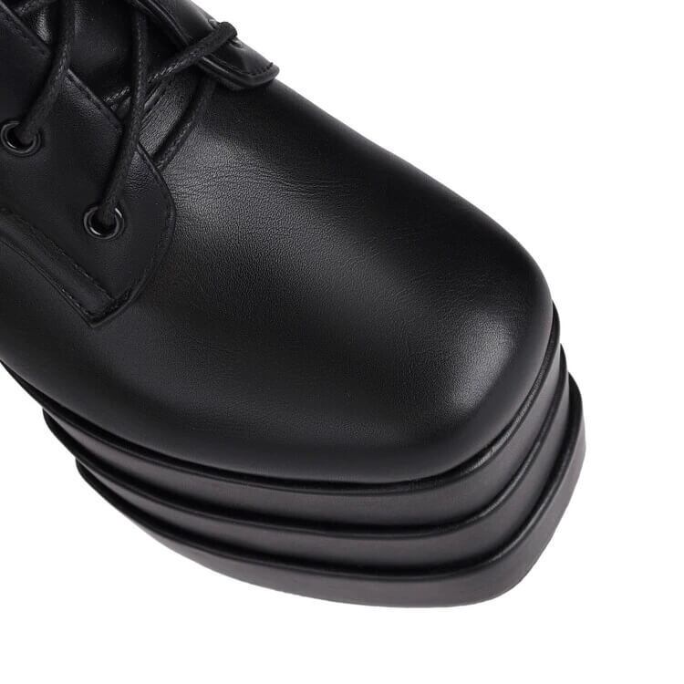 【size26.5cmあり】ボリュームレイヤーソールレースアップロングブーツ14cm全3色