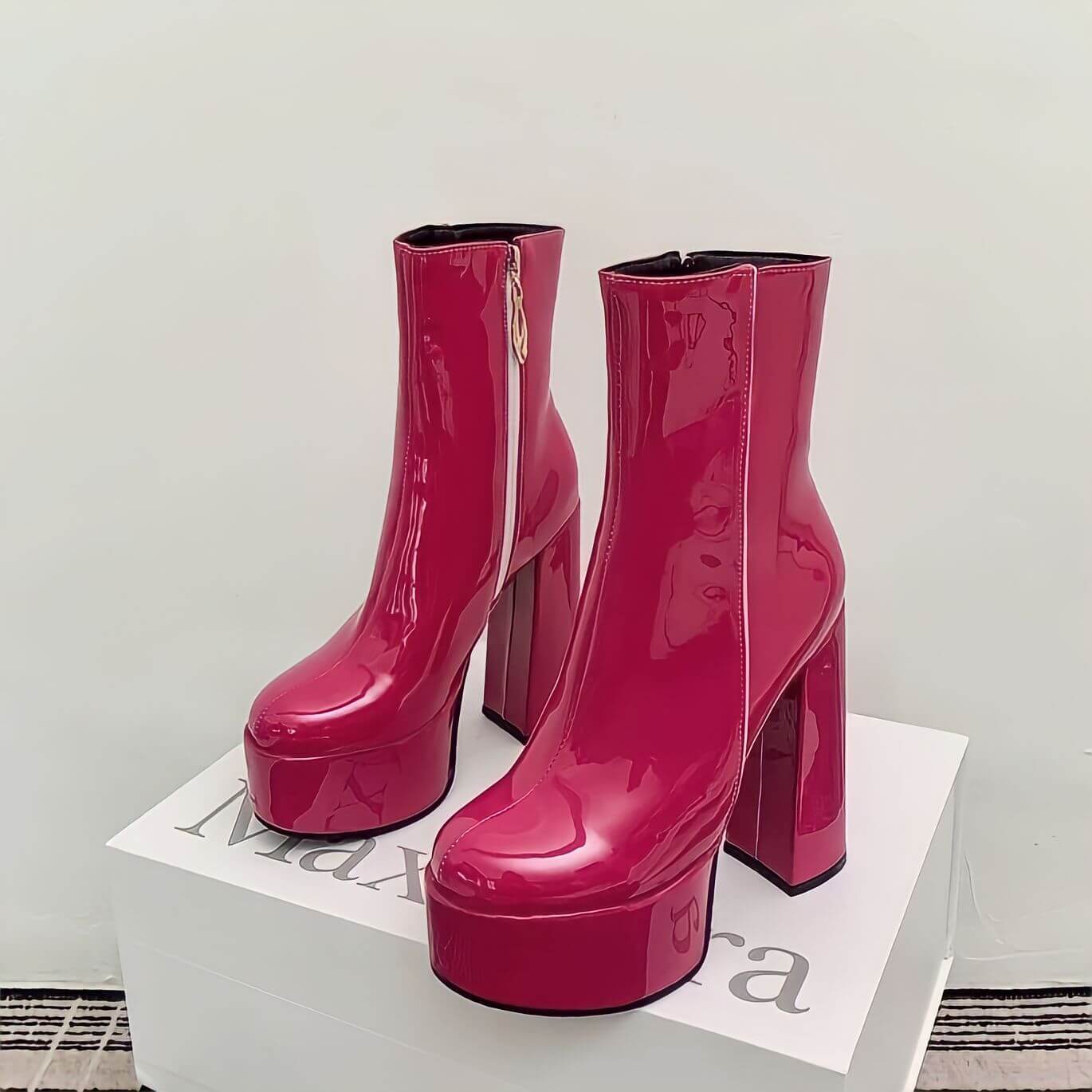 【size26.5cmあり】パテントレザーショートブーツ14cm全5色