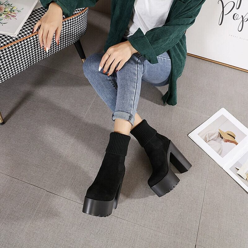 《選べるヒール高さ》切り替えニット2way厚底ショートブーツ全2色【14cm/16cm】