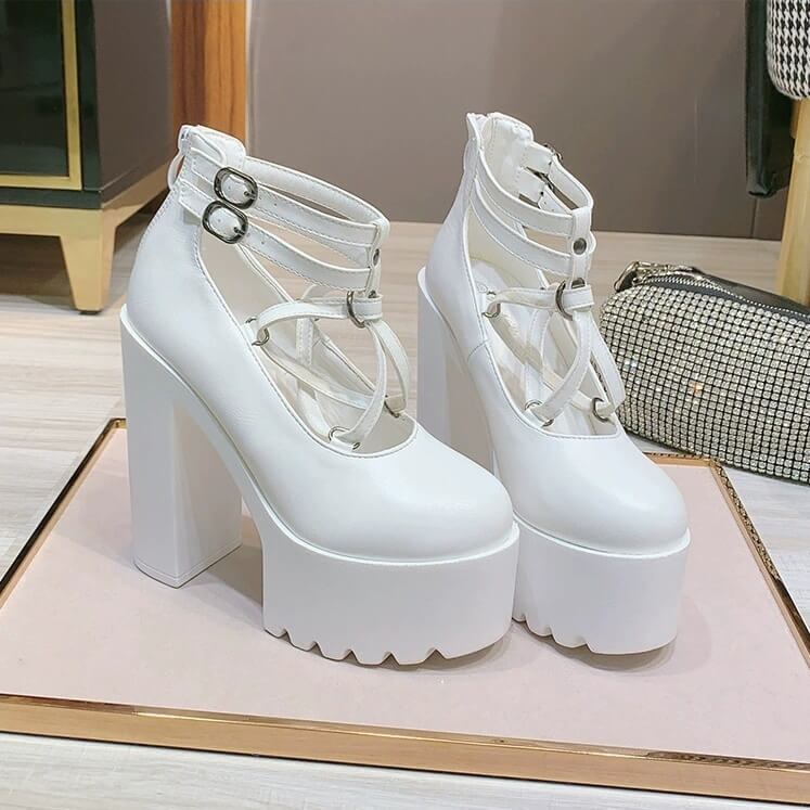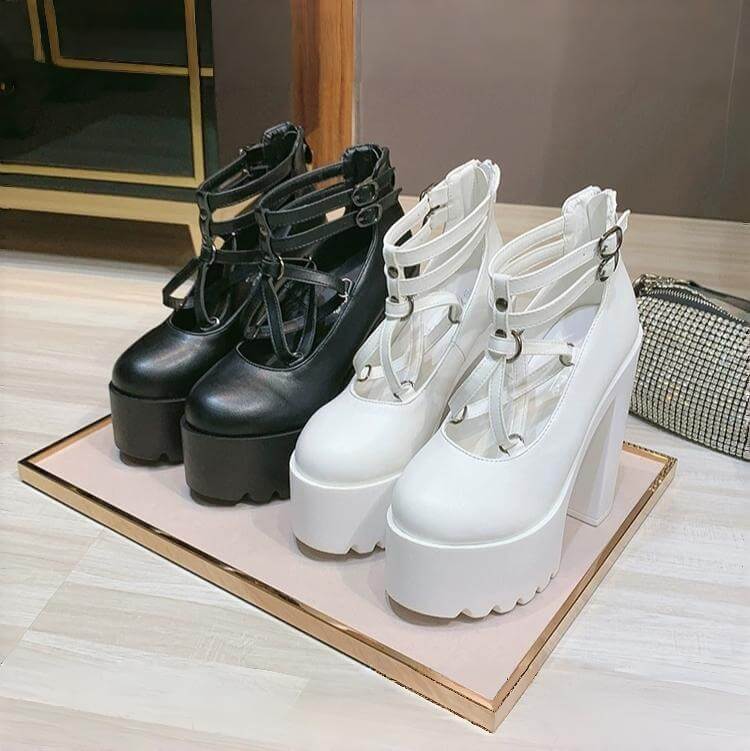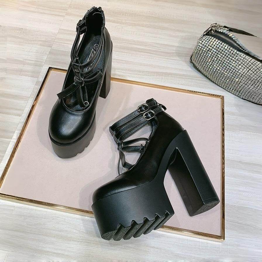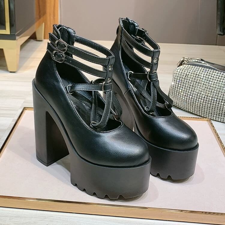ゴシックデザインベルト厚底パンプス14cm全2色